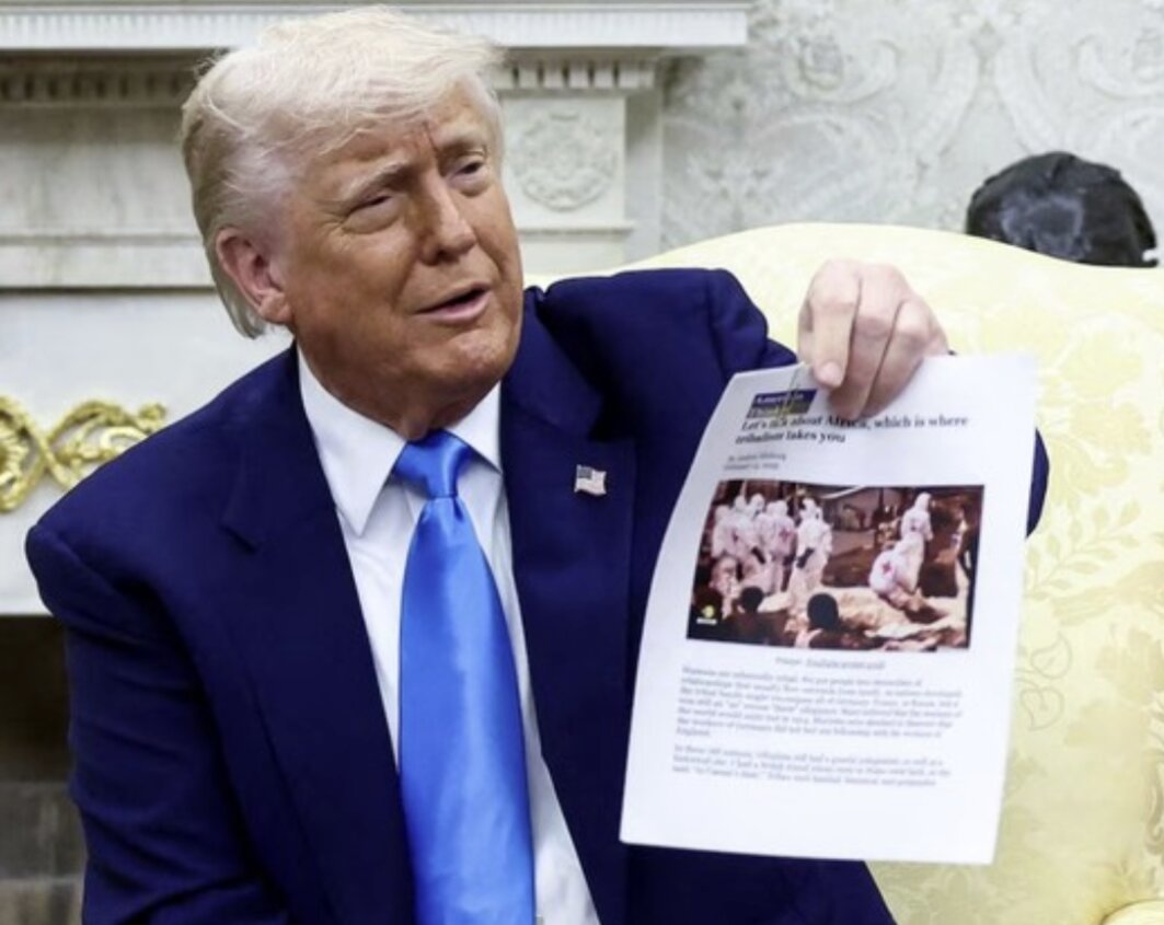 Bài trên blog mà ông Trump trình bày với ông Ramaphosa trong cuộc gặp tại Nhà Trắng là bài mà American Thinker (một tạp chí trực tuyến) đăng về tình hình xung đột và căng thẳng chủng tộc ở Nam Phi và Congo. Bài đăng không chú thích bức ảnh, nhưng cho biết đó là ảnh chụp màn hình video trên YouTube, kèm theo đường dẫn đến bản tin về Congo có dẫn nguồn Reuters .