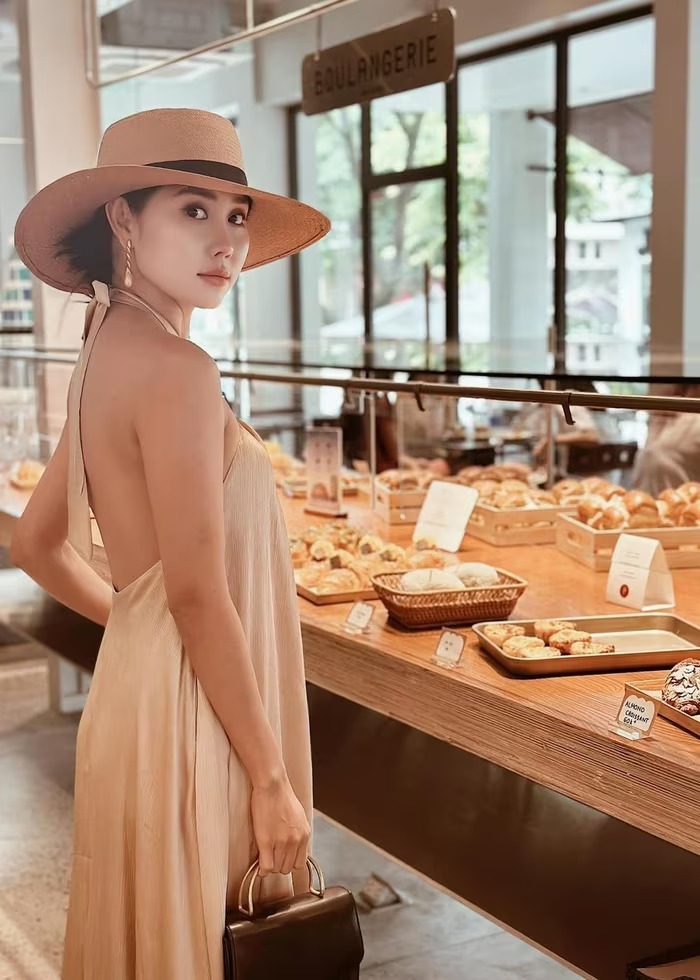 Tuổi 37, diễn viên Tường Vi sở hữu võng lưng đẹp 'mướt mắt', chuộng váy áo cổ yếm, hai dây.