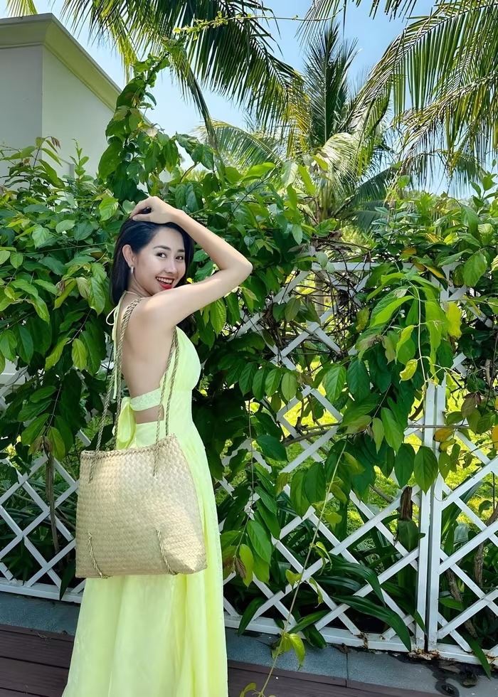 Tường Vi sở hữu võng lưng đẹp “mướt mắt”. Để khoe lợi thế hình thể này, cô chuộng trang phục cổ yếm hoặc hai dây. Ảnh: FB Tường Vi.