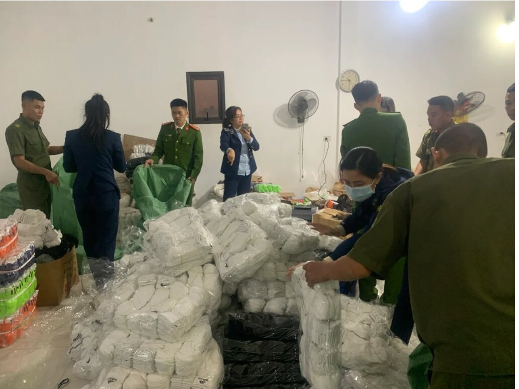 Qua kiểm tra, lực lượng chức năng phát hiện và tạm giữ hơn 20.000 đôi tất thành phẩm giả nhãn hiệu Nike, Adidas, Uniqlo cùng 100 kg tất rời (tương đương 1.500 đôi) chưa đóng gói, có gắn giả logo Nike. Ngoài ra, cơ quan chức năng còn thu giữ 12 máy móc phục vụ sản xuất như máy dệt, máy khâu đầu tất có nguồn gốc Trung Quốc, 200 khuôn chân sấy bằng kim loại không nhãn mác, 69 kg tem nhãn giả các thương hiệu nổi tiếng, cùng hơn 160 kg nguyên liệu sản xuất như sợi dệt, chỉ màu và bao bì túi nilon.