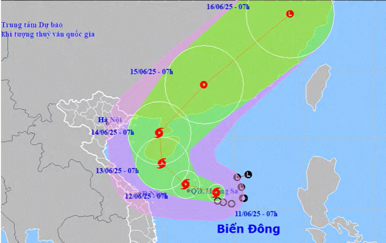 Theo Trung tâm Dự báo Khí tượng Thủy văn quốc gia, lúc 7h ngày 11/6, bão nằm trên vùng biển phía đông quần đảo Hoàng Sa với sức gió mạnh nhất 74 km/h (cấp 8), giật cấp 10 và di chuyển theo hướng tây bắc với tốc độ 5-10 km/h.