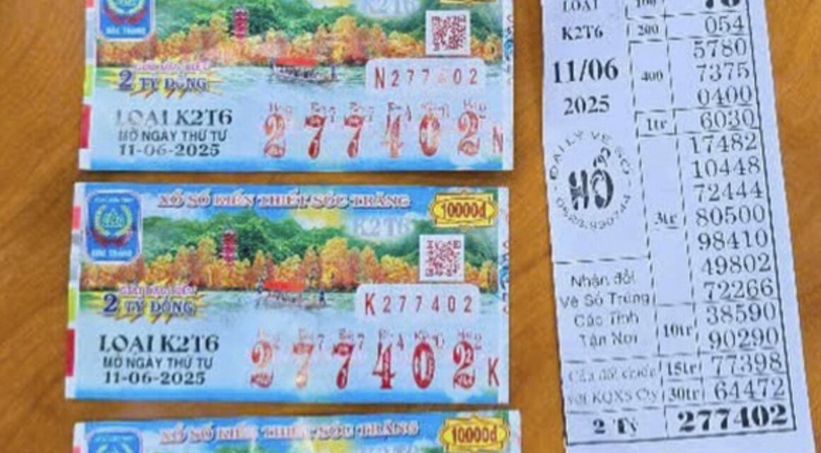 Các tờ vé số trúng giải độc đắc trên là của Công ty TNHH Một thành viên Xổ số kiến thiết Sóc Trăng với dãy số 277402, xổ ngày 11-6.