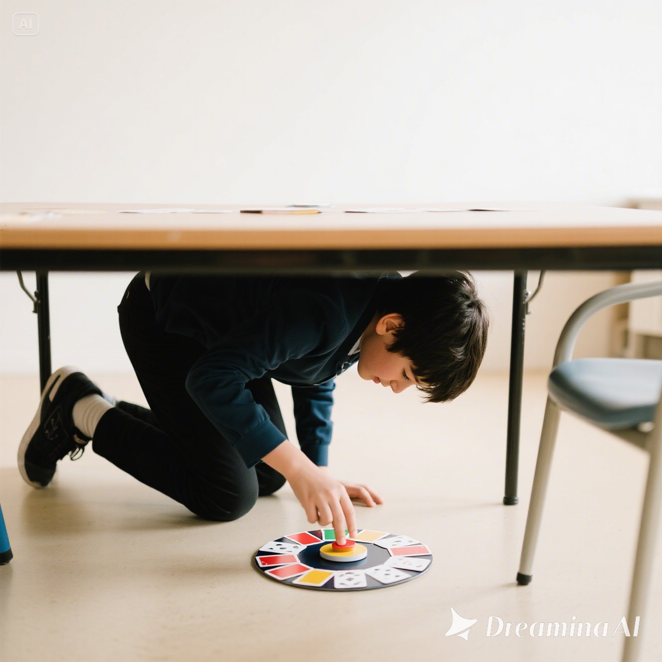 – Em Nam, em đang làm gì dưới gầm bàn?