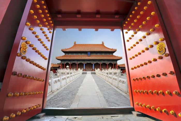 Hình ảnh cánh cổng đỏ đính 81 môn đinh dẫn vào Tử Cấm Thành. Ảnh: Sohu.