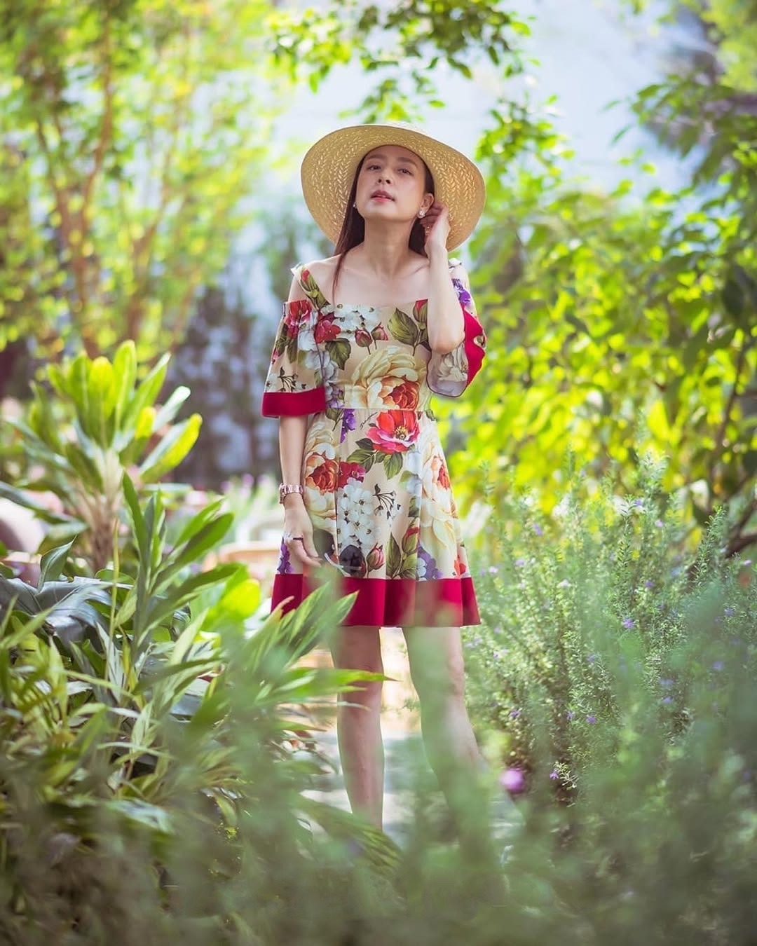 Đam mê thời trang, bà sắm nhiều váy midi chữ A phong phú về chất liệu, kiểu dáng, họa tiết, màu sắc. Trên trang cá nhân, bà thỉnh thoảng chia sẻ ảnh mặc váy hoa dạo chơi trong vườn kèm thông điệp tích cực về chăm sóc sắc đẹp, tinh thần cho phụ nữ.