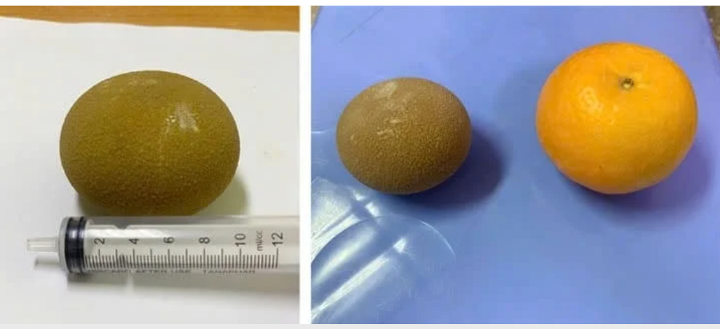 Viên sỏi bàng quang có kích thước rất lớn, tương đương quả cam, tròn xoe, lấy ra từ cơ thể người đàn ông 69 tuổi khiến các bác sĩ cũng phải ngạc nhiên.