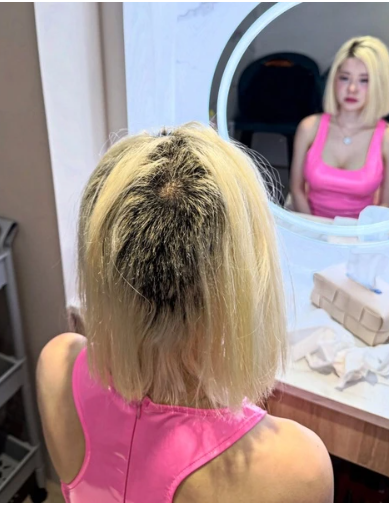 Trước đó vào ngày 17/6, DJ Soda (tên thật Hwang So-hee, sinh năm 1988) gây sốc khi chia sẻ loạt hình ảnh mái tóc bị rụng một mảng lớn sau khi tẩy tóc ở một tiệm quen.