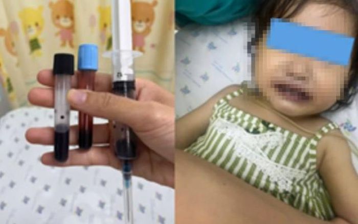 Bé gái 16 tháng tuổi bị methemoglobine máu (tức hồng cầu không gắn kết được với oxy để chuyển thành máu hồng) sau bữa ăn trưa. Ảnh: BVCC.