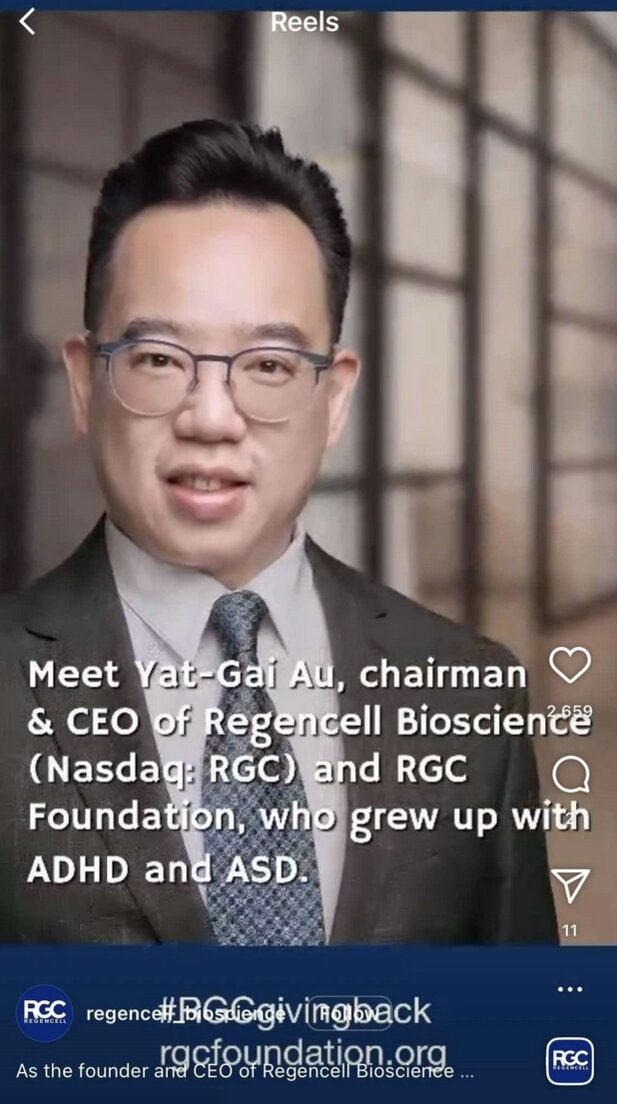 H́nh ảnh CEO Yat-Gai Au được đăng tải trên Instagram của Regencell.
