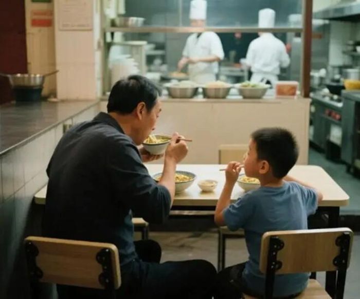 Tại một quán mì nhỏ vắng khách nằm trong con hẻm ở đường phố Quảng Châu (Trung Quốc), có một cặp cha và con trai cùng bước vào.