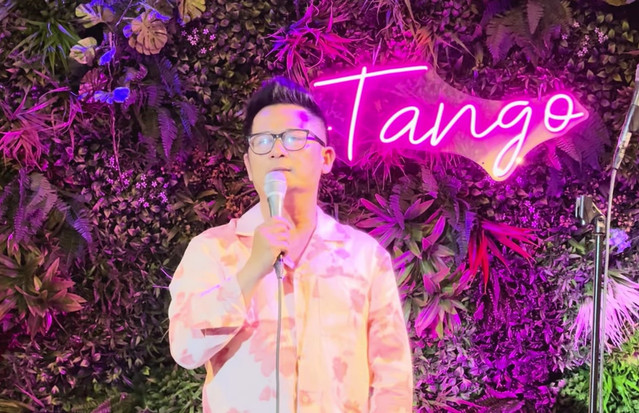 Nói xong, Bằng Kiều lên sân khấu cầm mic hát tặng bạn bè, gia đình. Anh nói: "Đây là show duy nhất tôi vừa hát vừa phải trả tiền, đã lên hát còn trả tiền cho con trai".
