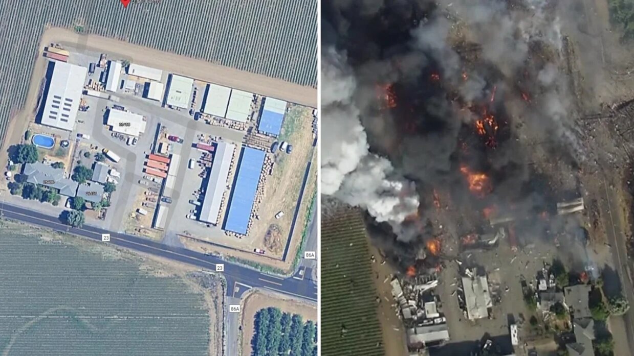Hình ảnh về hiện trường của cơ sở này trước và sau vụ nổ.(Minh họa)
