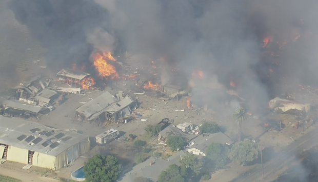 Một số công trình trên khu đất đã bị bốc cháy sau nhiều vụ nổ lớn, và ngọn lửa đã lan ra thành nhiều đám cháy cỏ với tổng diện tích cháy khoảng 80 mẫu Anh, theo Sở Cứu hỏa Esparto cho biết trong cuộc họp báo vào đêm thứ Ba 1/7. Vụ nổ ban đầu xảy ra vào khoảng 5:50 chiều cùng ngày thứ Ba này.
