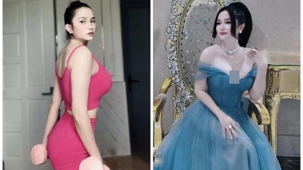 Sau 2 lần sinh nở, vợ Khánh Đơn vẫn theo đuổi phong cách gợi cảm. Cô chuộng trang phục trễ nải tôn vòng một. Ảnh: FB Huỳnh Như.
