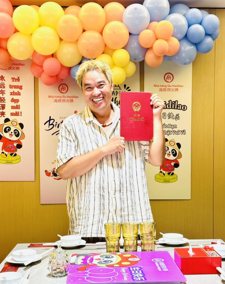 Nghệ sĩ Hoàng Mập khoe tấm bằng Thạc sĩ vừa hoàn thành. Ảnh: FBNV