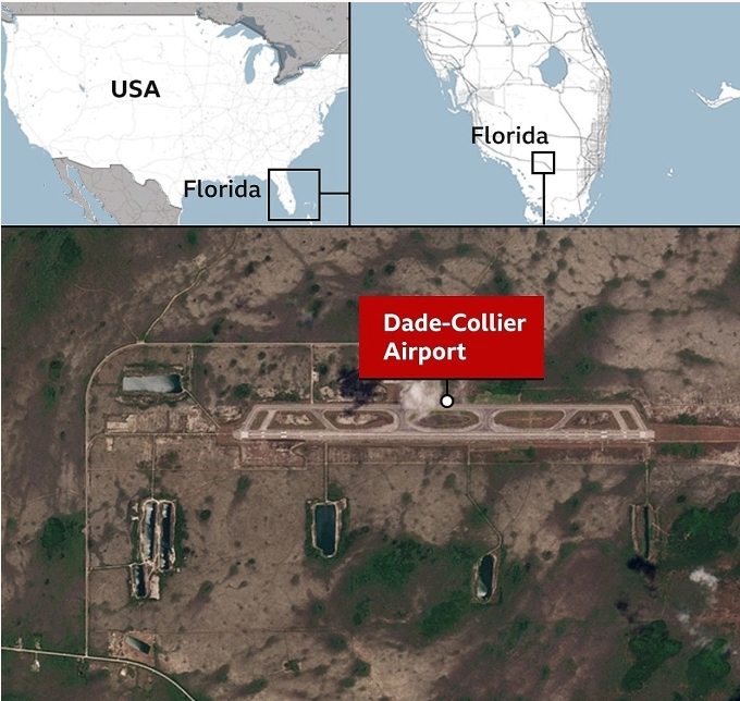 Vị trí sân bay Dade-Collier, khu vực đang xây dựng "nhà tù cá sấu Alcatraz". Đồ họa: BBC