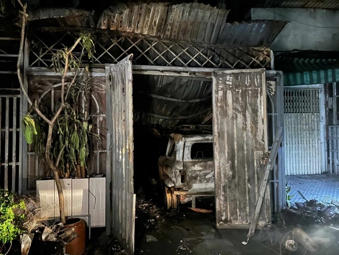 Phía trong căn hộ cháy có một ôtô, nhiều xe máy bị lửa làm hư hỏng, trơ khung. Mái tôn của căn nhà đổ sụp, các khung thép, cửa của công trình bị uốn cong do sức nóng. Một số căn hộ ở tầng trên di dời đồ đạc, vật dụng ra ngoài hành lang đề phòng cháy lan.