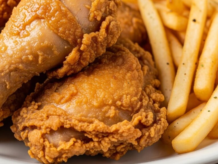 Gà rán và khoai tây chiên là những món dễ làm tích tụ mỡ trong gan nếu ăn thường xuyên