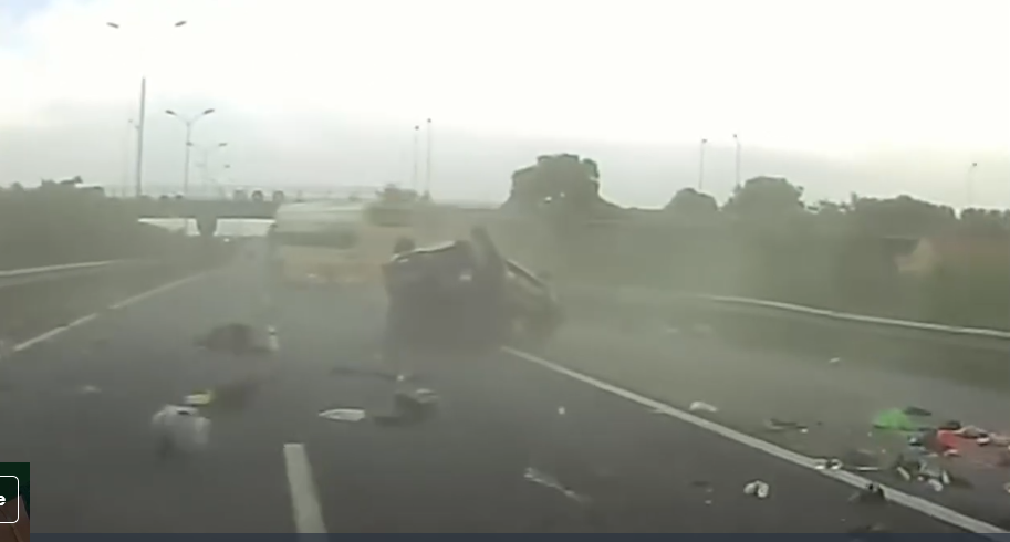Old  Default Xe biển xanh nổ lốp trên cao tốc: Khoảnh khắc kinh hoàng khi tai nạn xảy ra, nhiều thứ trong xe văng khắp mặt đường