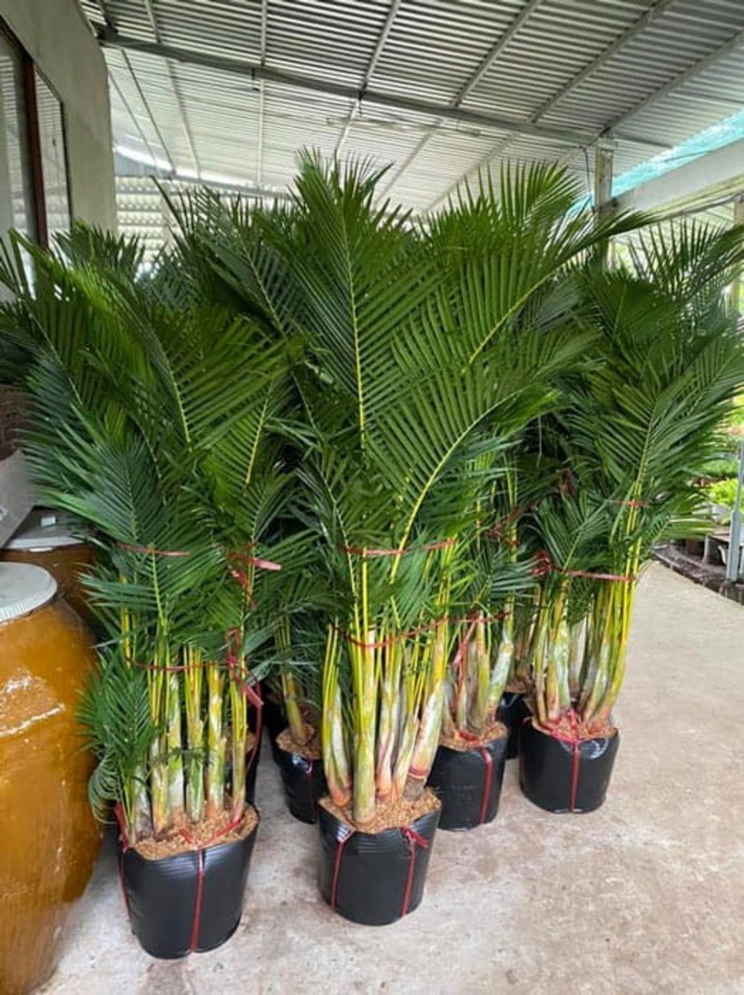 Điển hình như tại Vĩnh Long, ông N.V.H. đã biến việc trồng cau cảnh bán lá thành nguồn thu nhập chính, mang về 30 triệu đồng mỗi tháng. Tương tự, bà H.T.N.B. cũng có thu nhập từ 30 – 40 triệu đồng mỗi tháng nhờ trồng cau vàng bán lá. Mô hình này không chỉ tận dụng hiệu quả quỹ đất, khi cau vàng có thể phát triển tốt dưới tán các loại cây thân gỗ lớn, mà còn giúp bà con nông dân tối ưu hóa diện tích canh tác và tăng thêm thu nhập đáng kể.