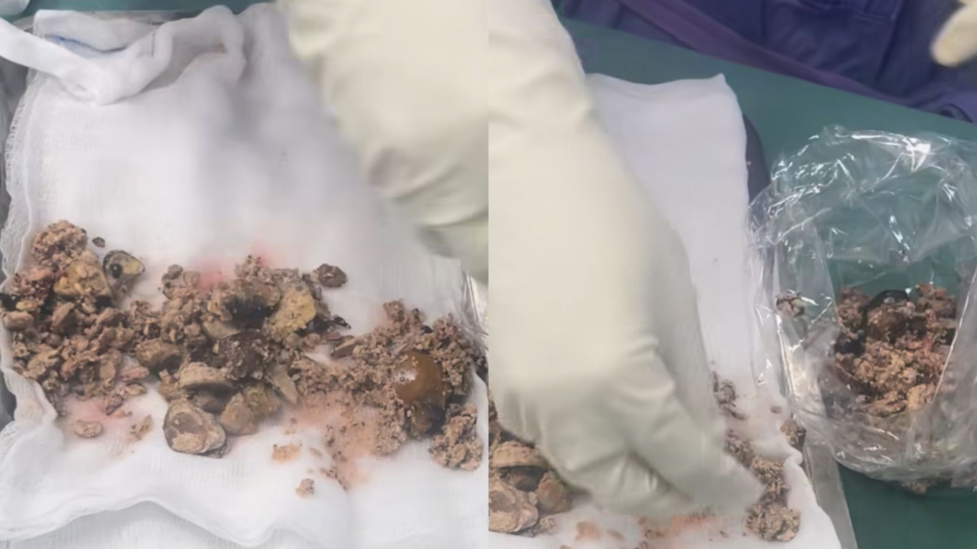 Sau khi phẫu thuật, bác sĩ đã lấy ra hàng trăm viên sỏi từ hai quả thận của bệnh nhân. Số lượng sỏi được tán ra từ thận của bệnh nhân nhiều tới mức được bác sĩ cũng phải sốc bởi nhìn "như sỏi ngoài bãi cát".