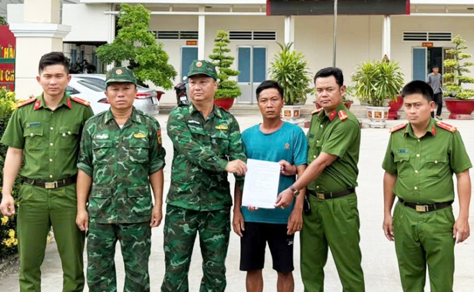 Lực lượng bộ đội biên phòng bàn giao Nguyễn Văn Tài cho công an điều tra. Ảnh: Đồn biên phòng cung cấp