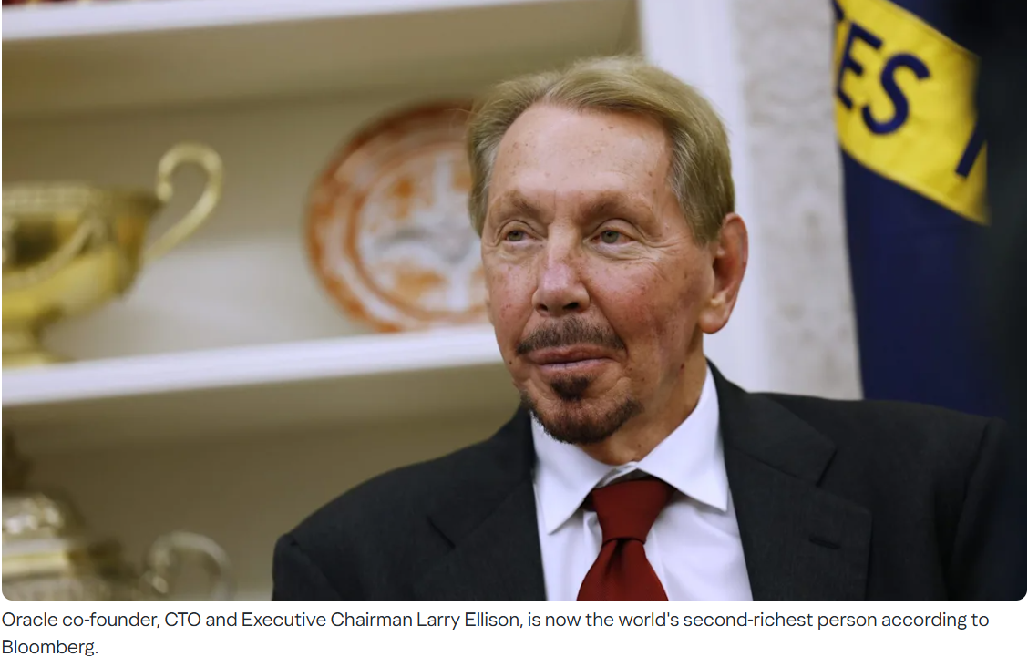 Larry Ellison, chủ sở hữu công ty Oracle, đã vượt qua Mark Zuckerberg, trở thành người giàu thứ hai hành tinh ở tuổi 80.