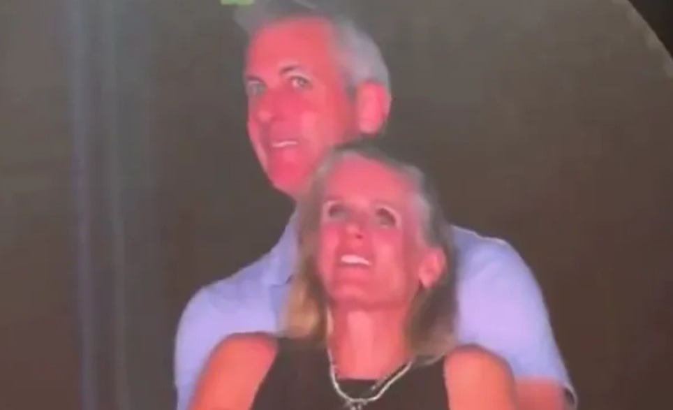 Hình ảnh được cho là Andy Byron và Kristin Cabot tình tứ khi đi xem Coldplay. Ảnh cắt từ video