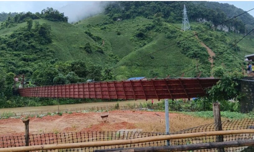 Đứt cáp cầu treo qua sông Nậm Núa, xã Thanh Yên, tỉnh Điện Biên. Ảnh: Báo Điện Biên Phủ.