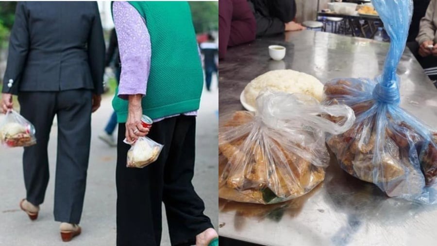 Ngoài ra, nhiều người, đặc biệt là người lớn tuổi, có thói quen tiết kiệm, không muốn thức ăn ngon bị bỏ đi. Một số khác lại nghĩ rằng mang về cho người nhà cùng thưởng thức cũng là một cách chia sẻ niềm vui. Vì vậy, hành động gói đồ ăn mang về dần trở thành một thói quen phổ biến ở nhiều vùng quê và kể cả ở thành phố.