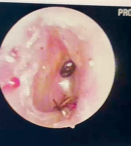 Khi tiến hành nội soi vùng tai của bé trai, các bác sĩ phát hiện nhiều dị vật sống ký sinh sâu, bám chặt vào phần ống tai.