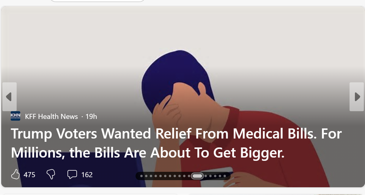 Tổng thống Donald Trump đã tái đắc cử vào mùa thu năm ngoái nhờ những lo ngại của cử tri về chi phí. Tuy nhiên, khi chính quyền của ông cắt giảm các quy định và chương trình liên bang được thiết kế để bảo vệ bệnh nhân khỏi chi phí chăm sóc sức khỏe cao, Trump có nguy cơ đẩy nhiều người Mỹ vào cảnh nợ nần, gây thêm áp lực lên ngân sách gia đình vốn đã căng thẳng vì các hóa đơn y tế.