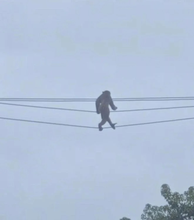 Ngày 23/7, mạng xã hội Trung Quốc lan truyền đoạn video ghi lại cảnh tượng hiếm gặp: một con khỉ đi thăng bằng trên dây điện cao ở thành phố Quý Dương, tỉnh Quý Châu. Khoảnh khắc này nhanh chóng gây bão mạng, thu hút hơn 1 triệu lượt thích và hơn 40.000 bình luận. Cư dân mạng hài hước bình luận: "Lão thiết, tôi men theo dây mạng đến tìm cậu đây!" hay "Khỉ thành tinh thật rồi!".