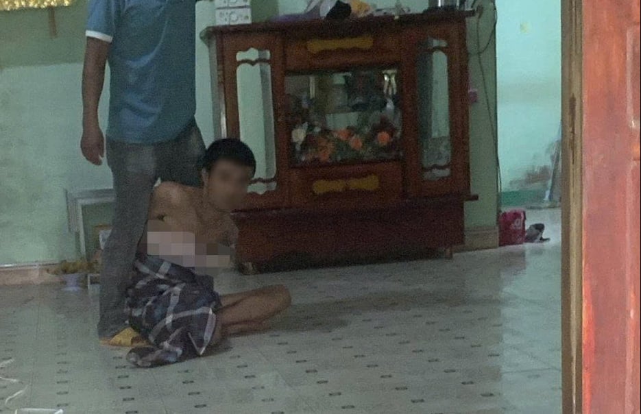 Người đàn ông lạ đột nhập vào nhà chị N. ở xã Hàm Liêm, tỉnh Lâm Đồng bị lực lượng chức năng khống chế. Ảnh: NDCC