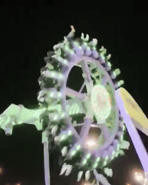 Trong video ghi lại vụ việc, khi cột trụ chính bị gãy, phần vòng quay tròn nơi khoảng 20 người chơi đang ngồi rơi mạnh xuống đất từ độ cao vài mét. Giày dép của một số người bắn ra ngoài vì cú va chạm.