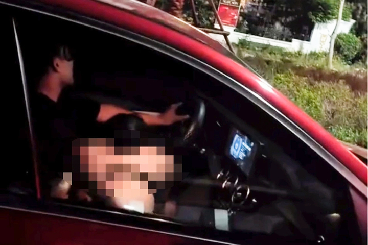 Hình ảnh đôi nam nữ có hành động nhạy cảm trên ô tô lan truyền trên mạng xã hội. (Ảnh chụp màn hình)