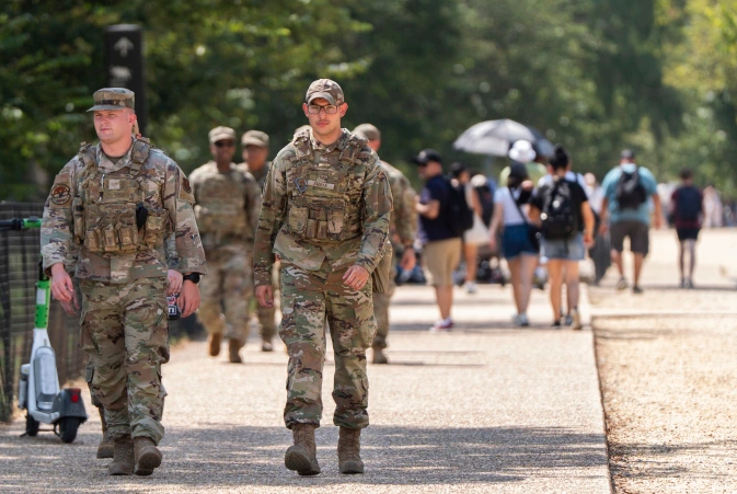 Lính Vệ binh Quốc gia Mỹ trên đường phố thủ đô Washington ngày 16/8. Ảnh: AP