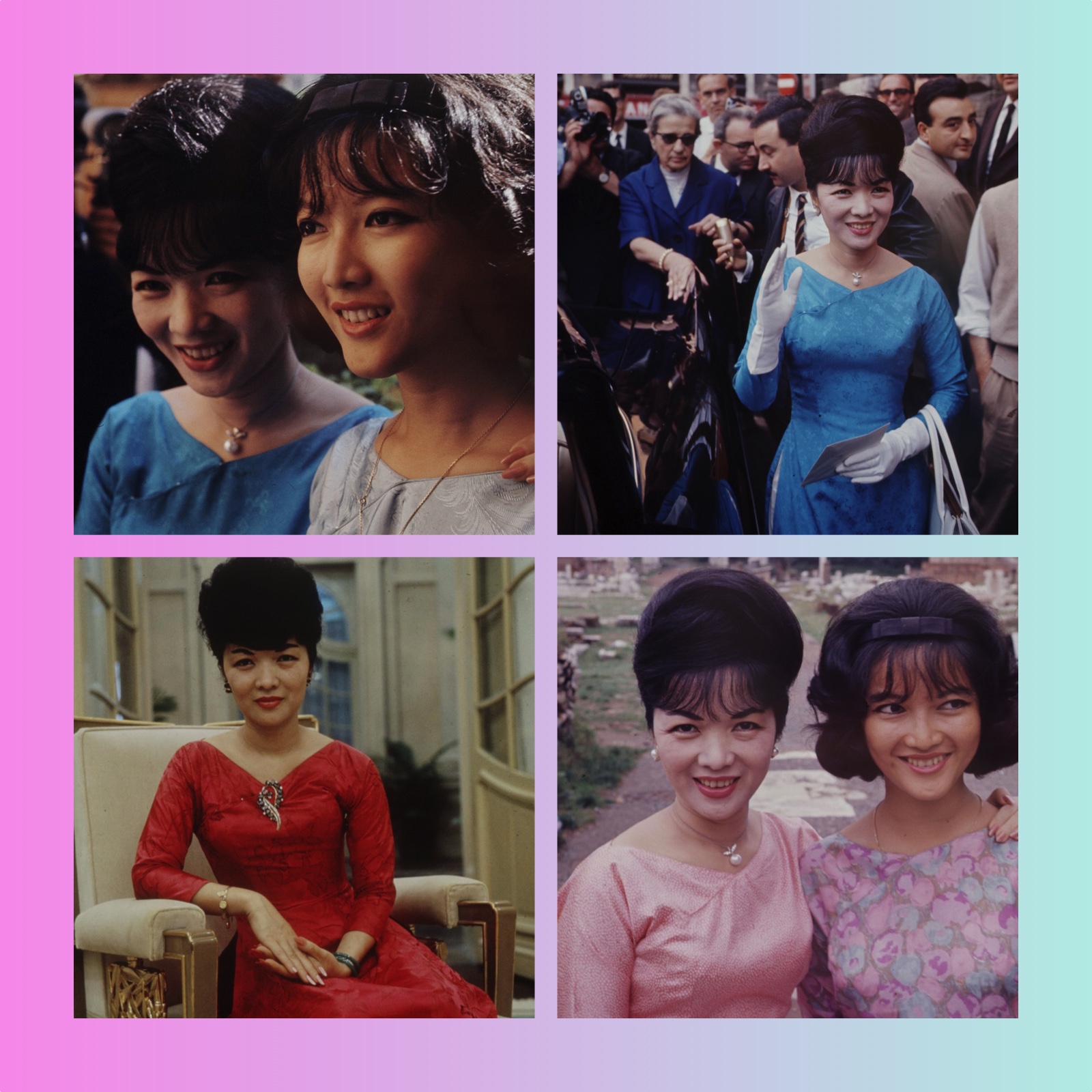 Trong một khoảnh khắc khác tại sân bay, hai mẹ con xuất hiện trong áo dài trắng thêu hoa, trên tay ôm những bó hồng đỏ thắm. Đó không chỉ là nghi thức ngoại giao đơn thuần mà còn là biểu tượng: hình ảnh một gia đình chính trị đang cố gắng khẳng định vị thế Việt Nam Cộng Hòa trên sân khấu thế giới, giữa bối cảnh quốc tế nhiều biến động.