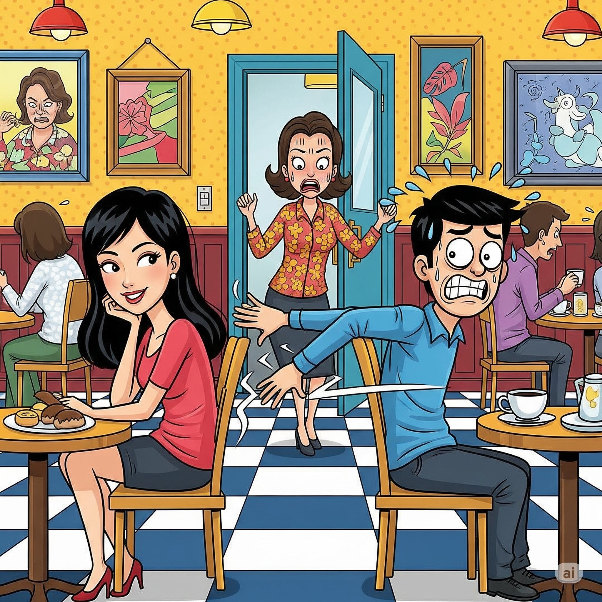 Một hôm, anh chồng đang ngồi uống cà phê với cô bồ thì bất ngờ… vợ xuất hiện. Không đánh ghen, không làm ầm, vợ chỉ đứng đó, khoanh tay, nhìn chồng đầy bình tĩnh.