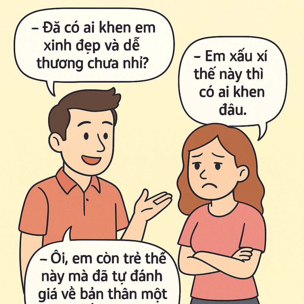 – Đã có ai khen em xinh đẹp và dễ thương chưa nhỉ?