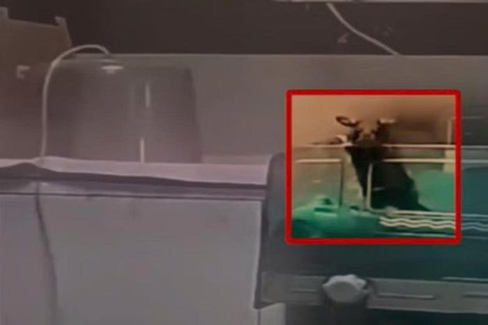 Đoạn phim giám sát cho thấy một con chuột di chuyển từ giường này sang giường khác trong bệnh viện, bò qua dây điện cùng các thiết bị khác.