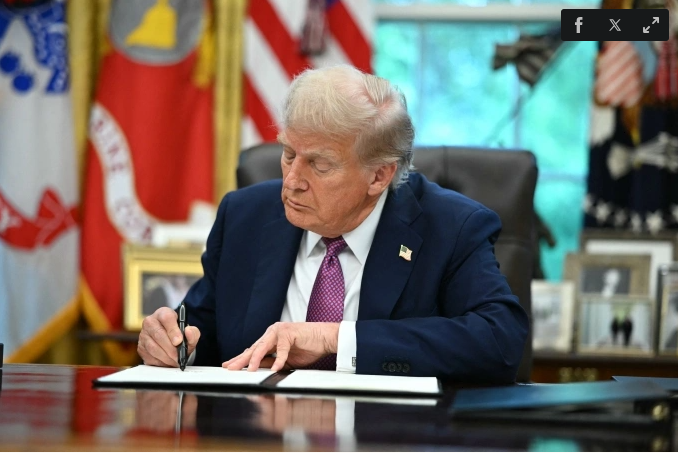 Tổng thống Donald Trump ký sắc lệnh hành pháp tại Nhà Trắng ngày 5/9. Ảnh: AFP