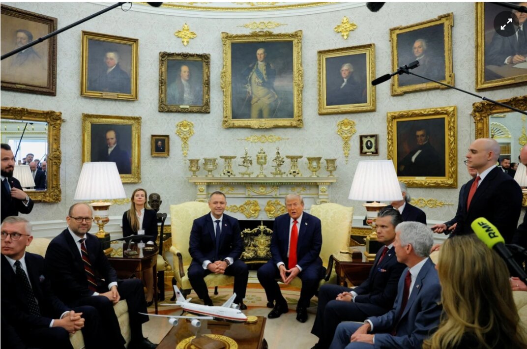 Phòng Bầu dục hôm 3/9, khi Tổng thống Mỹ Donald Trump gặp Tổng thống Ba Lan Karol Nawrocki. Ảnh: Reuters.