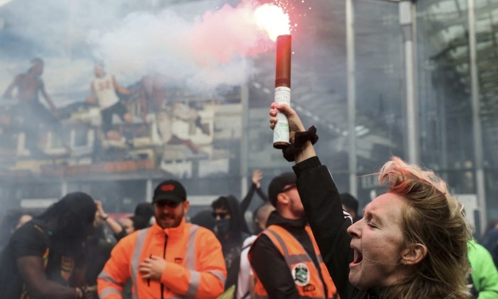 Người biểu tình cầm pháo sáng và hô khẩu hiệu trước nhà ga Gare du Nord ở Paris ngày 10/9. Ảnh: AFP