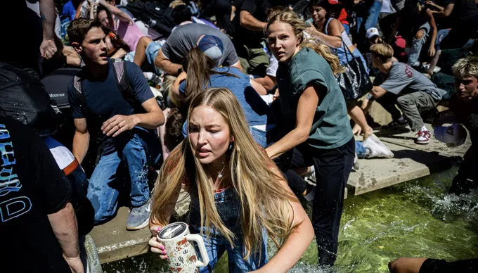 Đám đông đang hoảng loạn sau vụ ám sát này. (Ảnh: DESERET NEWS)
