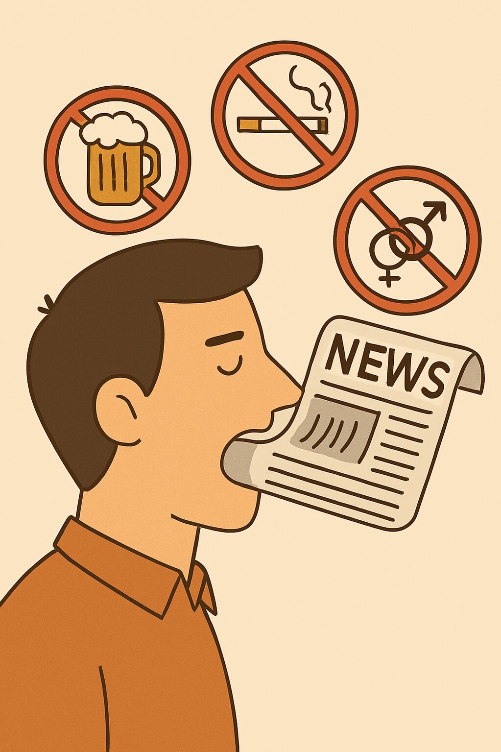 – Đọc báo thấy uống bia có hại, anh bỏ bia. – Đọc báo thấy hút thuốc gây ung thư, anh bỏ thuốc. – Đọc báo thấy nước tương có chất độc, anh bỏ luôn nước tương. – Đọc báo thấy tình dục ảnh hưởng tim mạch, anh... bỏ đọc báo luôn!