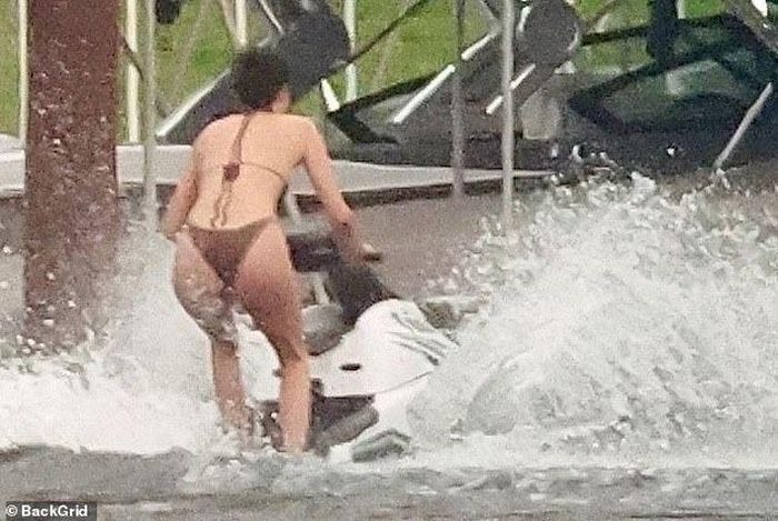 Kendall Jenner mới đây được cánh săn ảnh "chộp" khoảnh khắc mặc bikini, lái môtô nước ở tiểu bang Washington. Kendall Jenner điều khiển chiếc môtô một cách thành thục. Đặc biệt, bộ trang phục gợi cảm giúp Kendall Jenner khoe cơ bụng săn chắc và vóc dáng đẹp.
