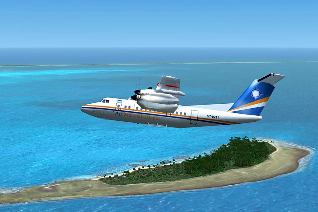 Sân bay Amata Kabua ở thủ đô Majuro, quần đảo Marshall có một đường băng dài gần 2,5 km, được xây trên cồn cát hẹp như sợi chỉ nằm giữa Thái Bình Dương. Vì vị trí hẻo lánh, mọi vật liệu để cải tạo đường băng đều phải vận chuyển từ nước ngoài. Ảnh: Islandsim