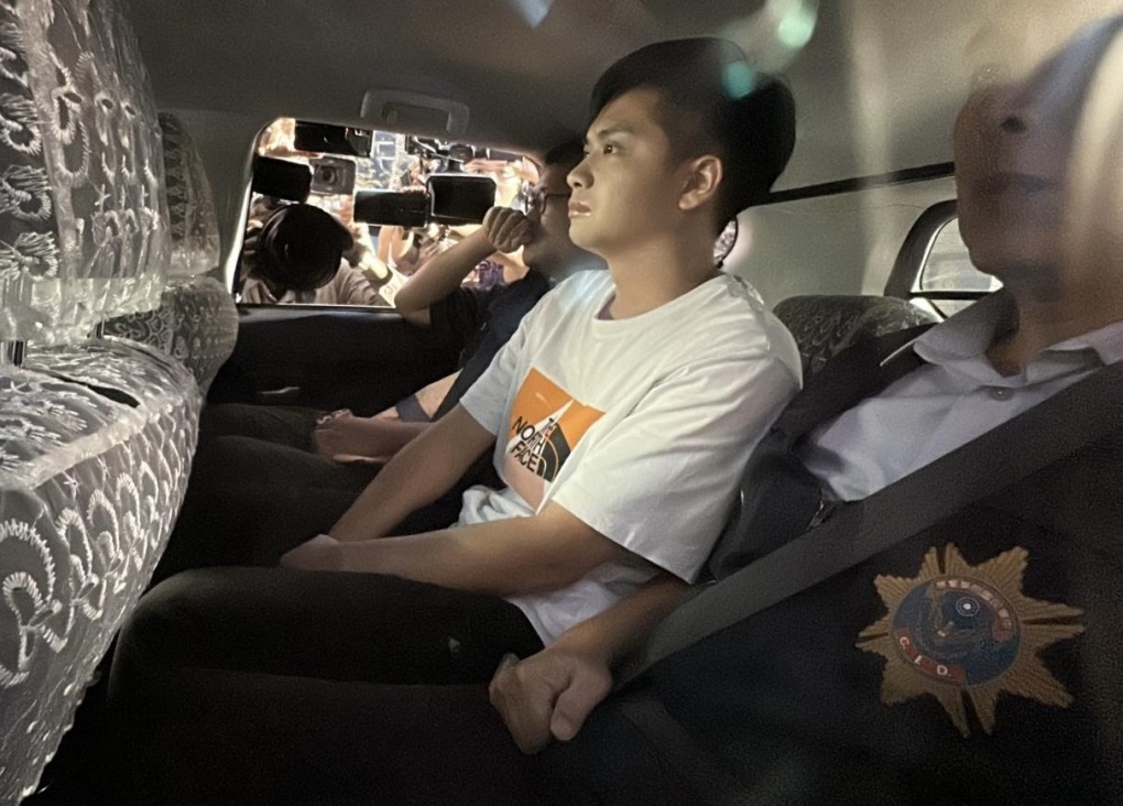 Cung Ích Đình (áo trắng) bị cảnh sát đưa về đồn thẩm vấn ngày 15/9. Ảnh: ctinews
