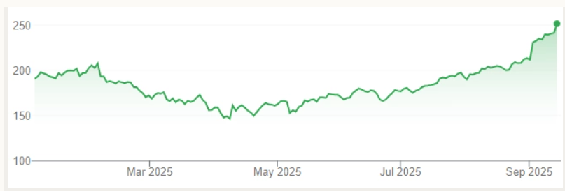 Cổ phiếu Alphabet tăng mạnh trong nửa năm gần đây. Đồ thị: Google Finance